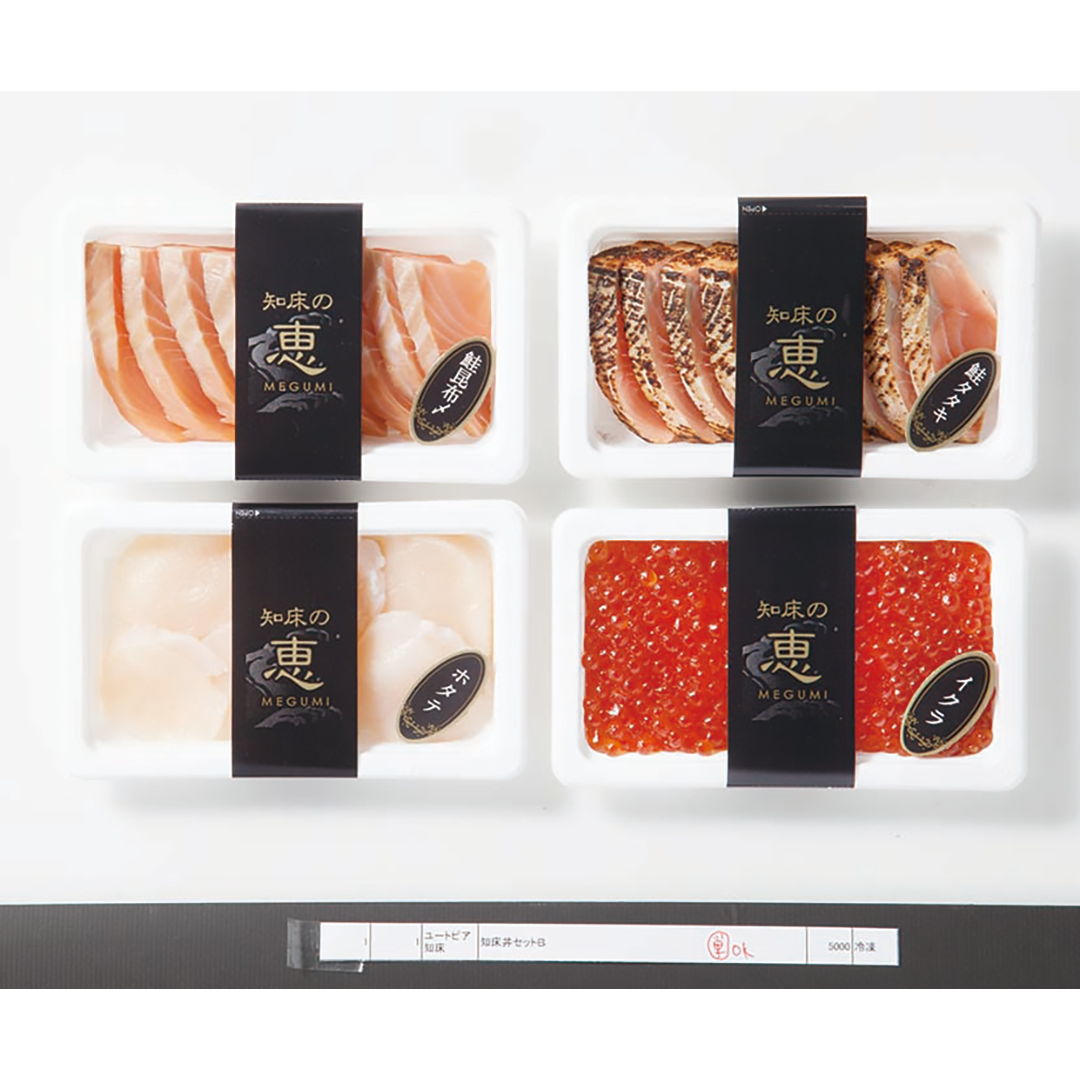 ◎内容:北海道産醤油いくら/80g、知床産鮭たたき・知床産鮭昆布〆/各60g、ほたて/90g