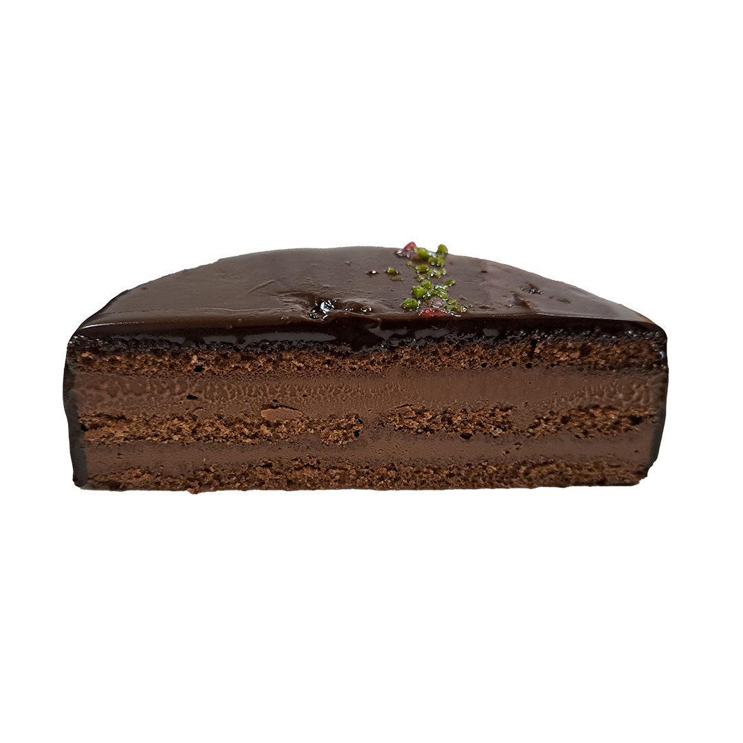 ベルギー産チョコレートを使用した生チョコレートをたっぷり練り込んだ濃厚で重厚な伝統的チョコレートケーキです。トッピングにはピスタチオとラズベリー顆粒を散りばめました。
