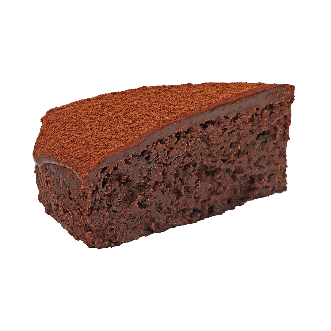 チョコレートをふんだんに使用した生地を、しっとり焼きあげて生チョコを塗ってカカオをふりかけました。チョコ好きにおすすめ。