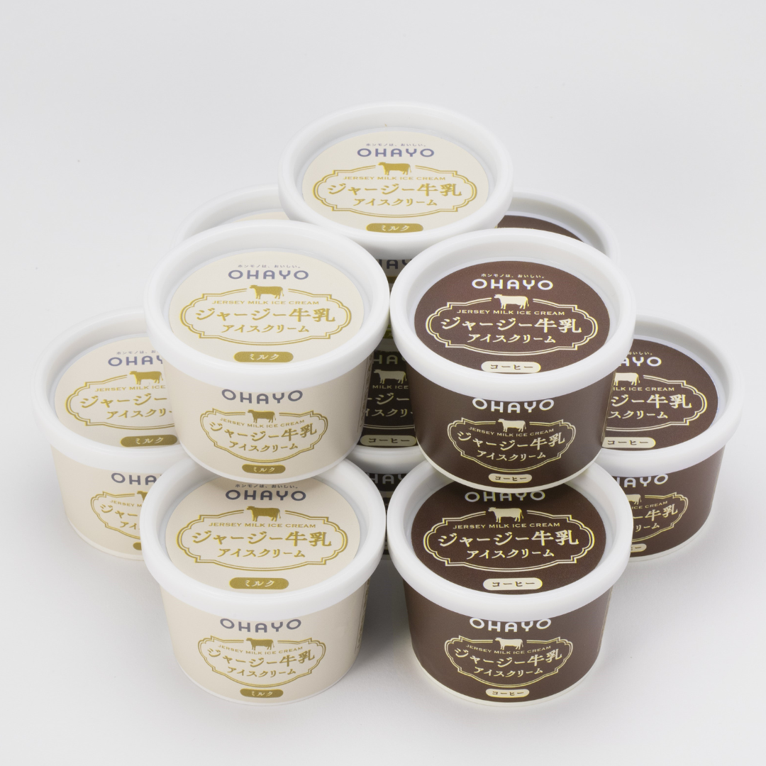 ジャージー乳は一般的なホルスタイン種に比べ、乳脂肪分や乳たんぱく質が多いので、味わい深く牛乳本来のやさしい風味とコク、すっきりとした後味が特徴です。ジャージー乳本来の味を引き立たせるため乳化剤、安定剤、香料、着色料不使用。【ミルク】が5個、【コーヒー】が5個の計10個を詰め合わせました。